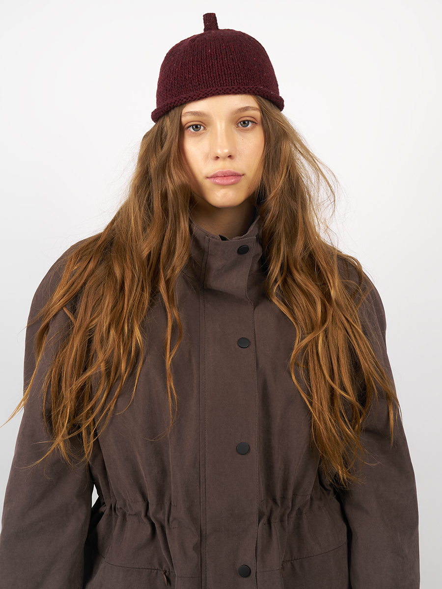 Шапка укороченная с пипкой из шерсти мериноса и альпаки