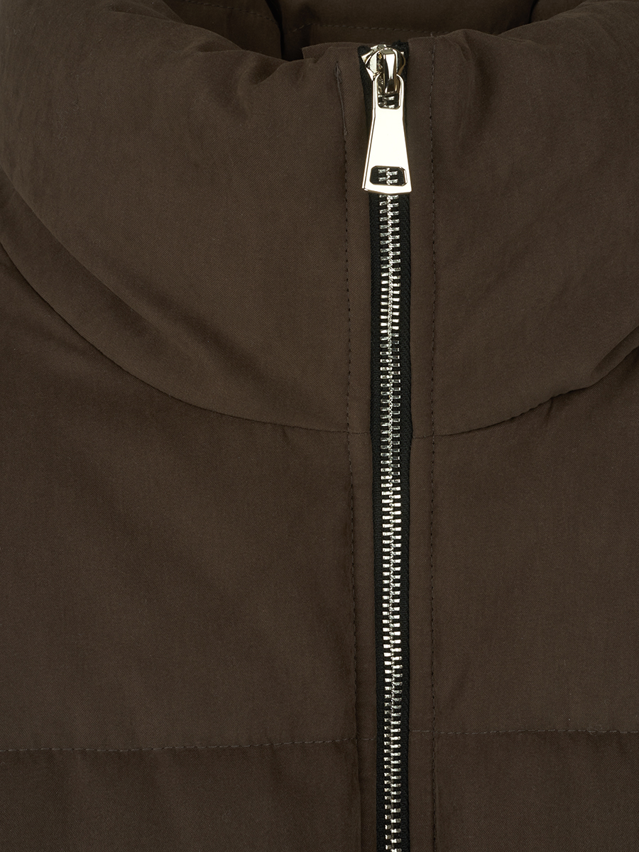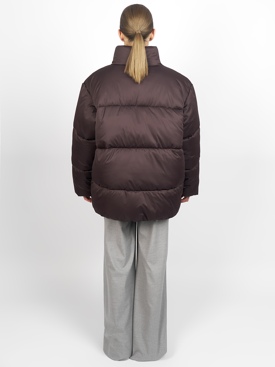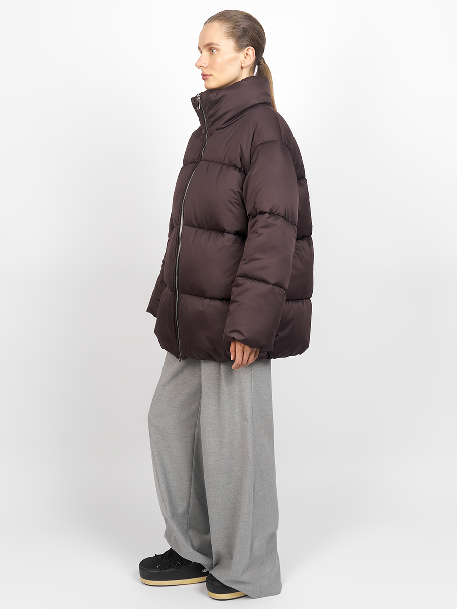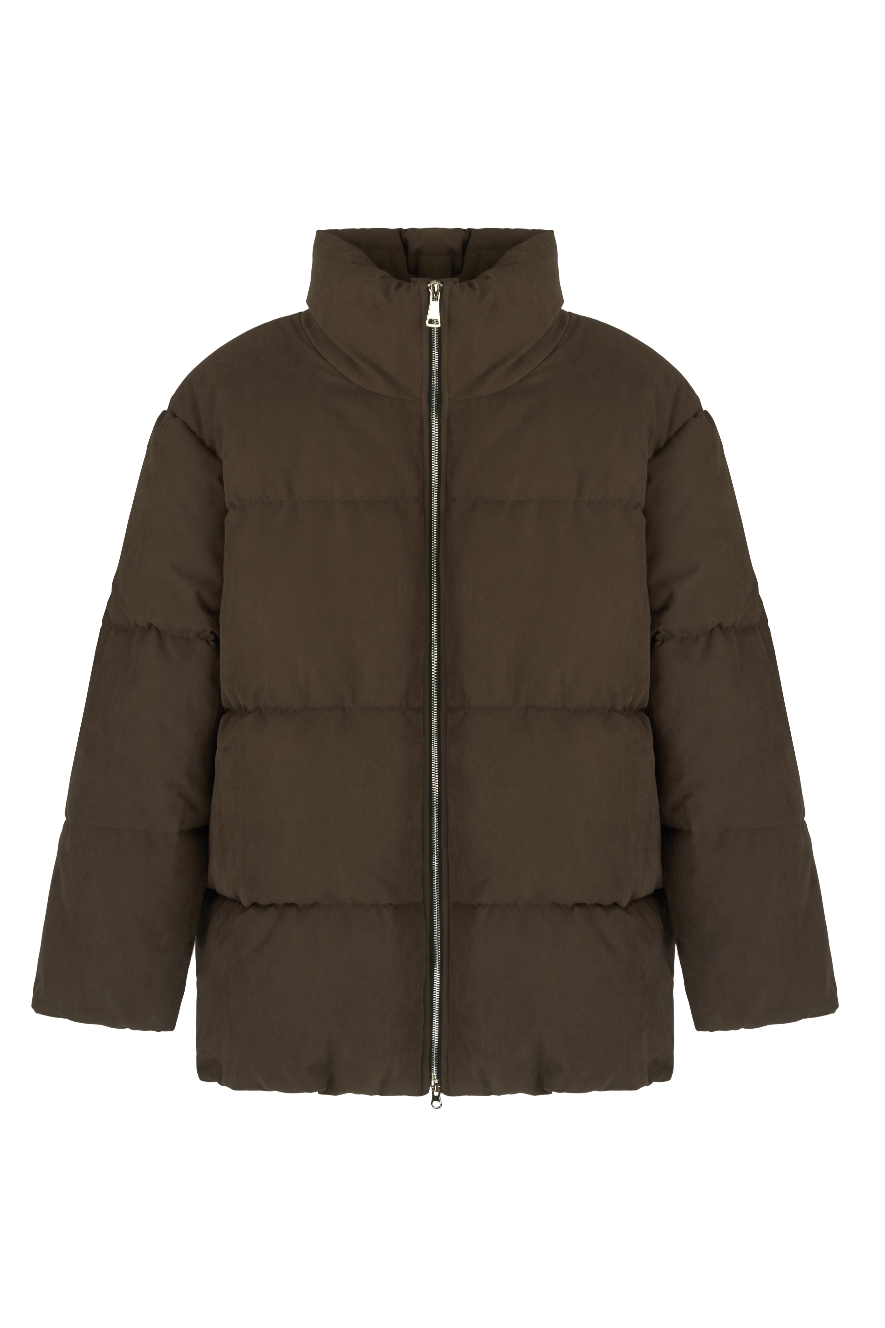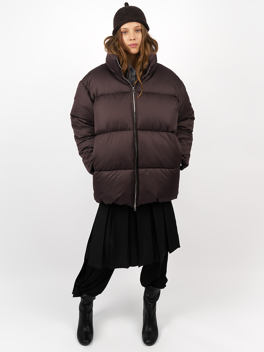 Благодаря свободному крою, пуховик можно сочетать с теплыми свитерами, создавая образы в стиле casual.