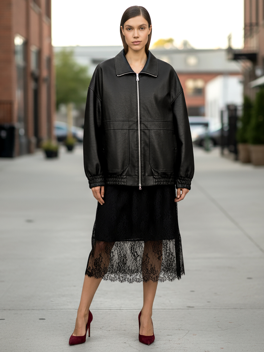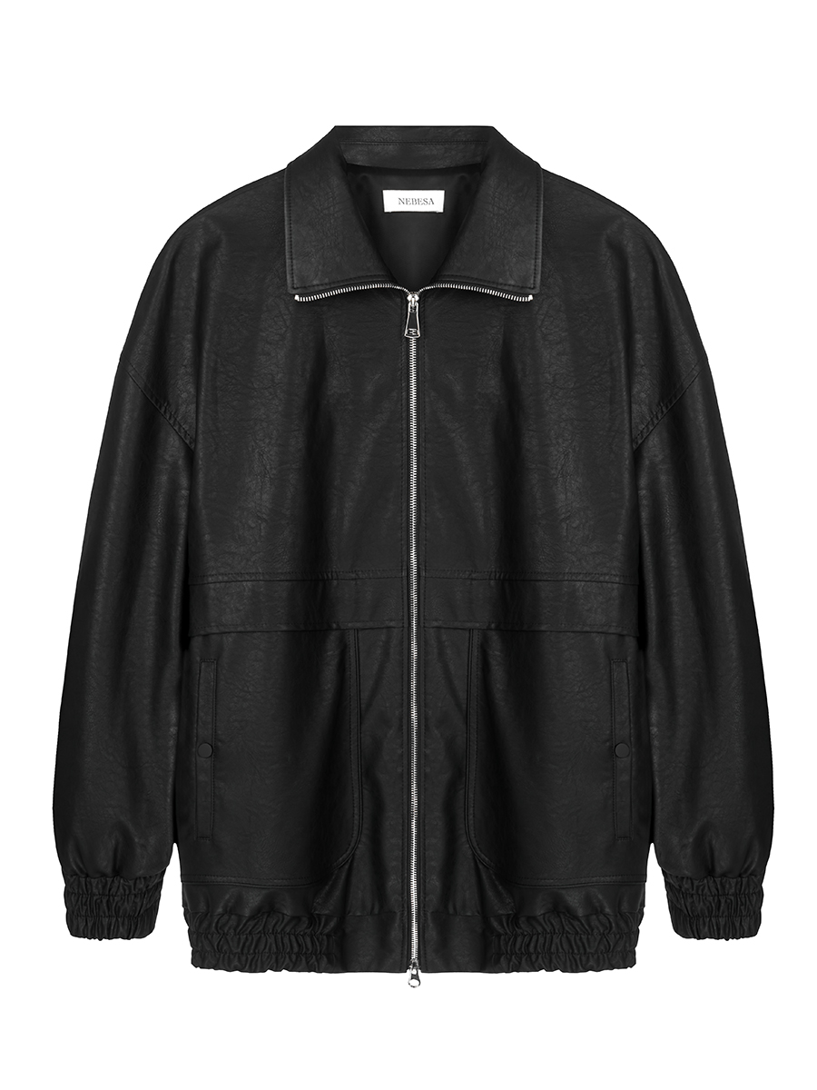 Бомбер из текстурированной эко-кожи, высокий воротник застегивается на молнию,