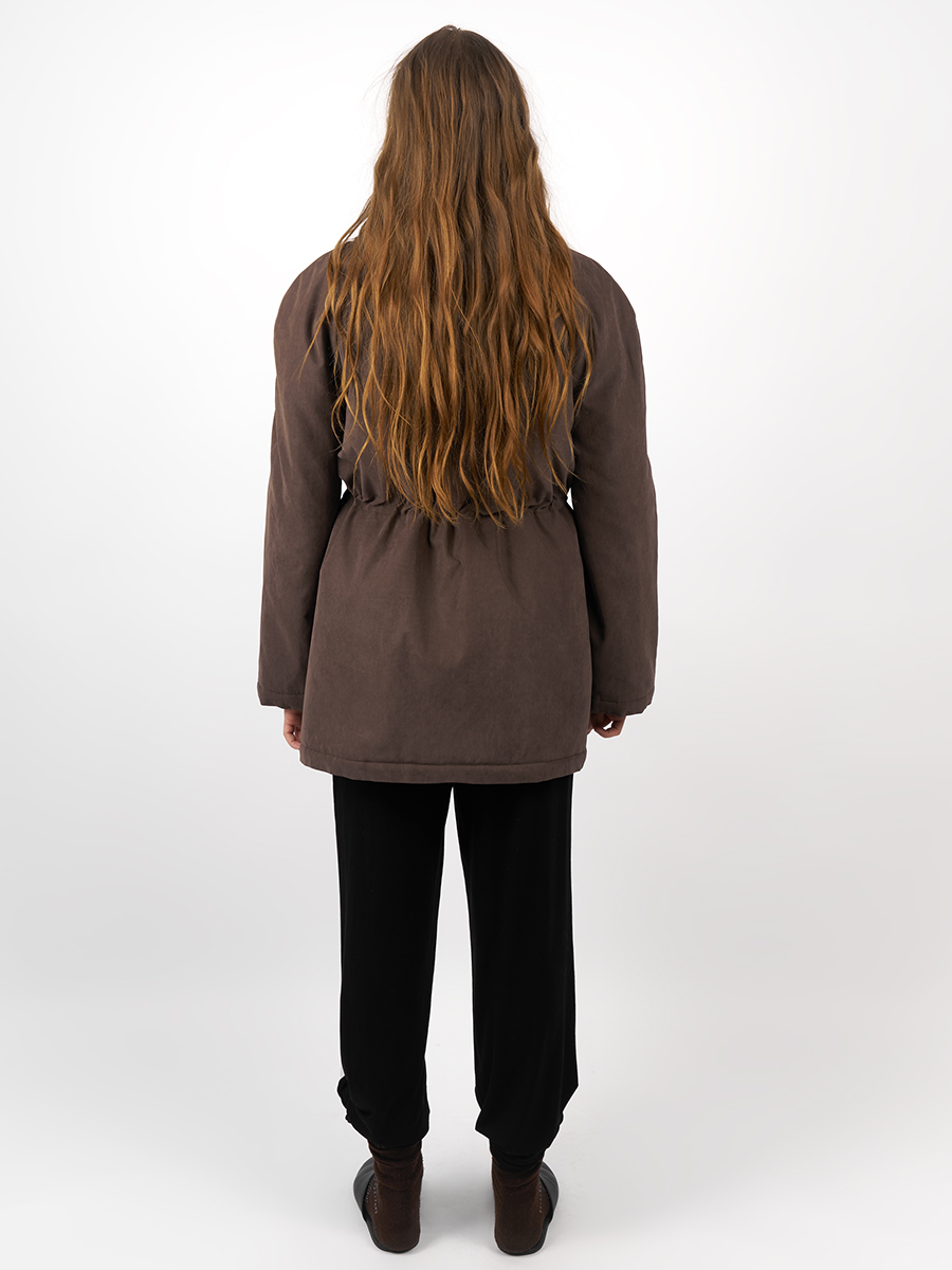 Застегивается на молнию и кнопки, утепленный стеганый подклад.