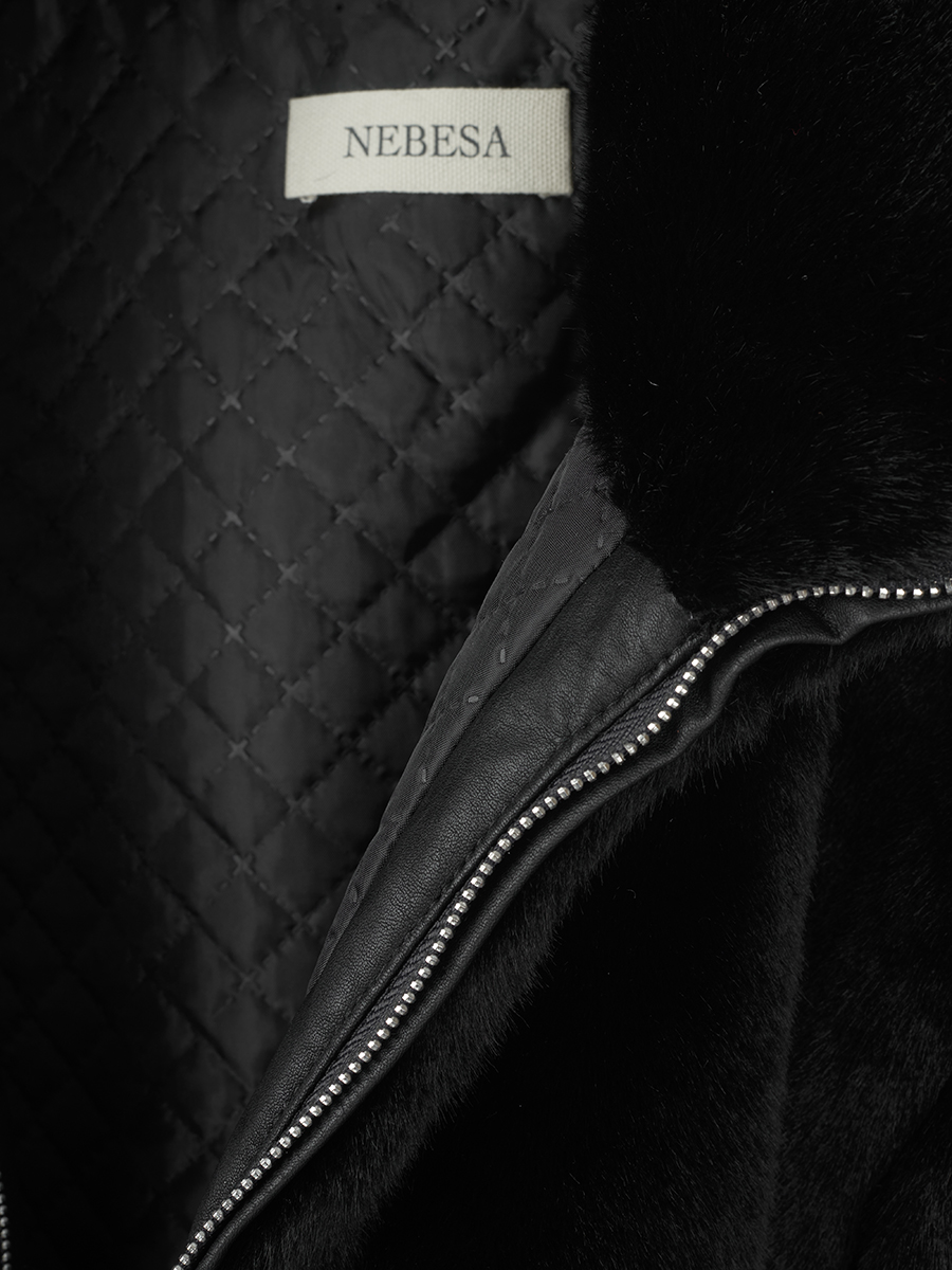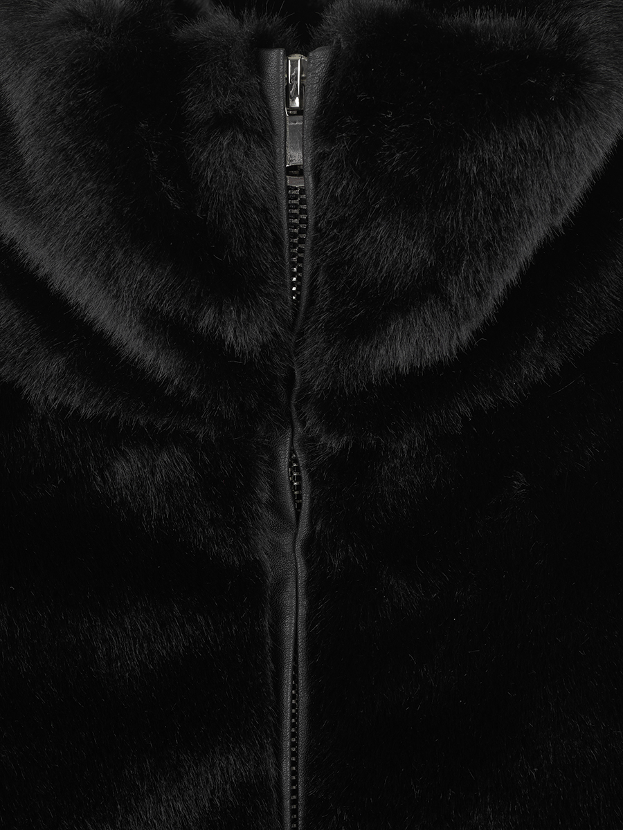 Бомбер из эко-меха, застегивается на молнию, воротник стойка, карманы в швах.